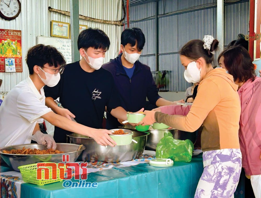 សមាជិកក្លឹបវប្បធម៌ របាំ ចម្រៀង ចូលរួមចម្អិន និងចែកអាហារនៅផ្ទះបាយសប្បុរសធម៌នៃមន្ទីរពេទ្យពហុព្យាបាលខេត្ត Cà Mau។