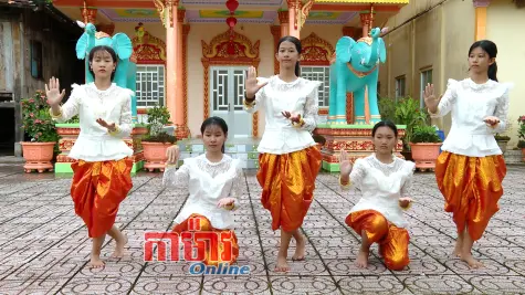 ប្អូនៗសិស្សសាលាចូលរួមតុបតែងដង្វាយសម្រាប់ថ្វាយព្រះខែ និងបង្ហាញពីស្នសដៃដ៏ប៉ិនប្រសព្វរបស់ខ្លួន។