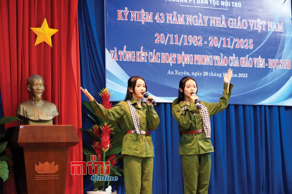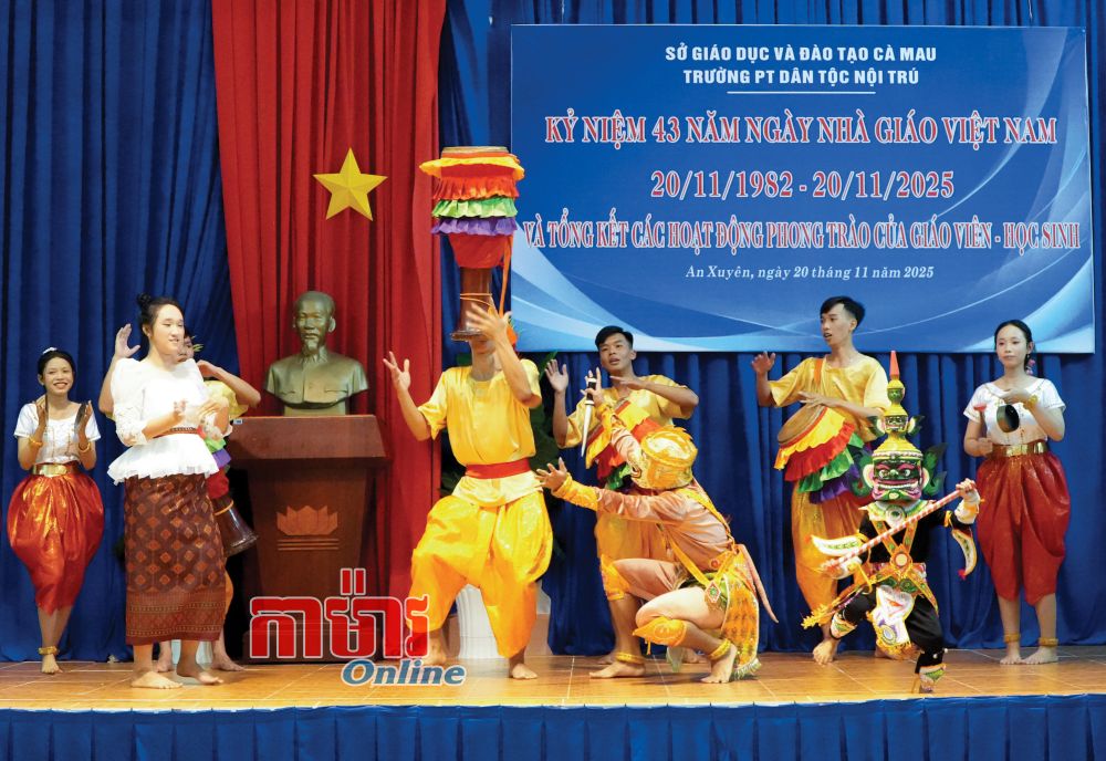 កម្មវិធីសិល្បៈអំណរទិវាគ្រូបង្រៀន Việt Nam ២០ វិច្ឆិកា របស់ប្អូនៗសិស្សានុសិស្សនៃវិទ្យាល័យជនជាតិអន្តេវាសិក Cà Mau។