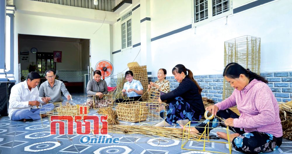 របរត្បាញសិប្បកម្មពីស្មៅប្លុងដំរីបានទាក់ទាញបងប្អូននារីយ៉ាងច្រើនកុះករនៅភូមិ Liên Hoà ចូលរួម។